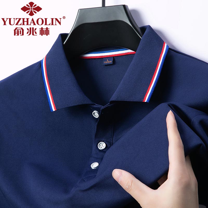 ¥39.9 俞兆林短袖t恤男士夏季商务休闲薄款体恤衫中青年冰丝纯色翻领POLO衫潮 藏青色 M (165) (建议100到120斤穿) 89.9