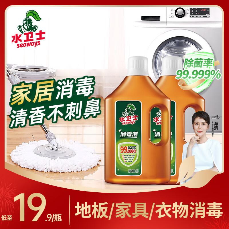 ¥16.9 水卫士 家用消毒液 1L*2瓶 39.9