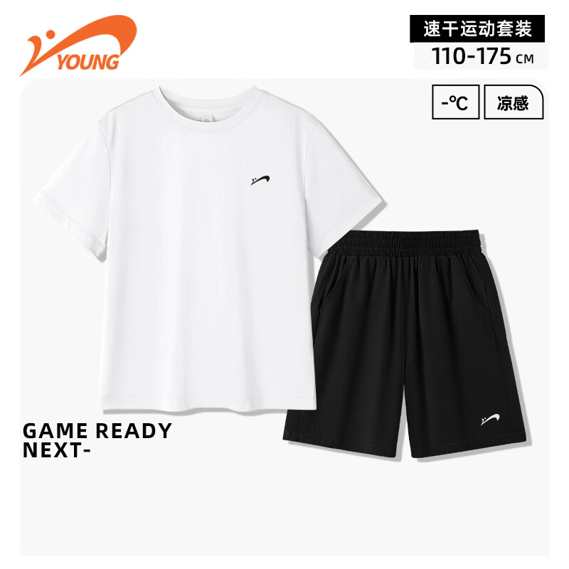 ¥59.9 贵人鸟童装男童套装夏季薄款儿童透气短袖t恤青少年运动速干夏装 白/G贵人鸟黑K-黑/G贵人鸟 140 64.9