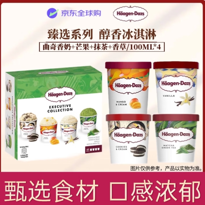 156元包邮!哈根达斯 巧克力2/香草/焦糖饼干奶油4*100ml礼盒装*4件