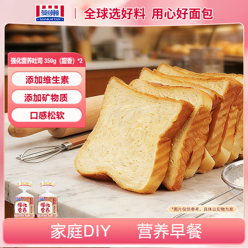 自营曼可顿强化营养吐司首购仅需10.9元/2袋