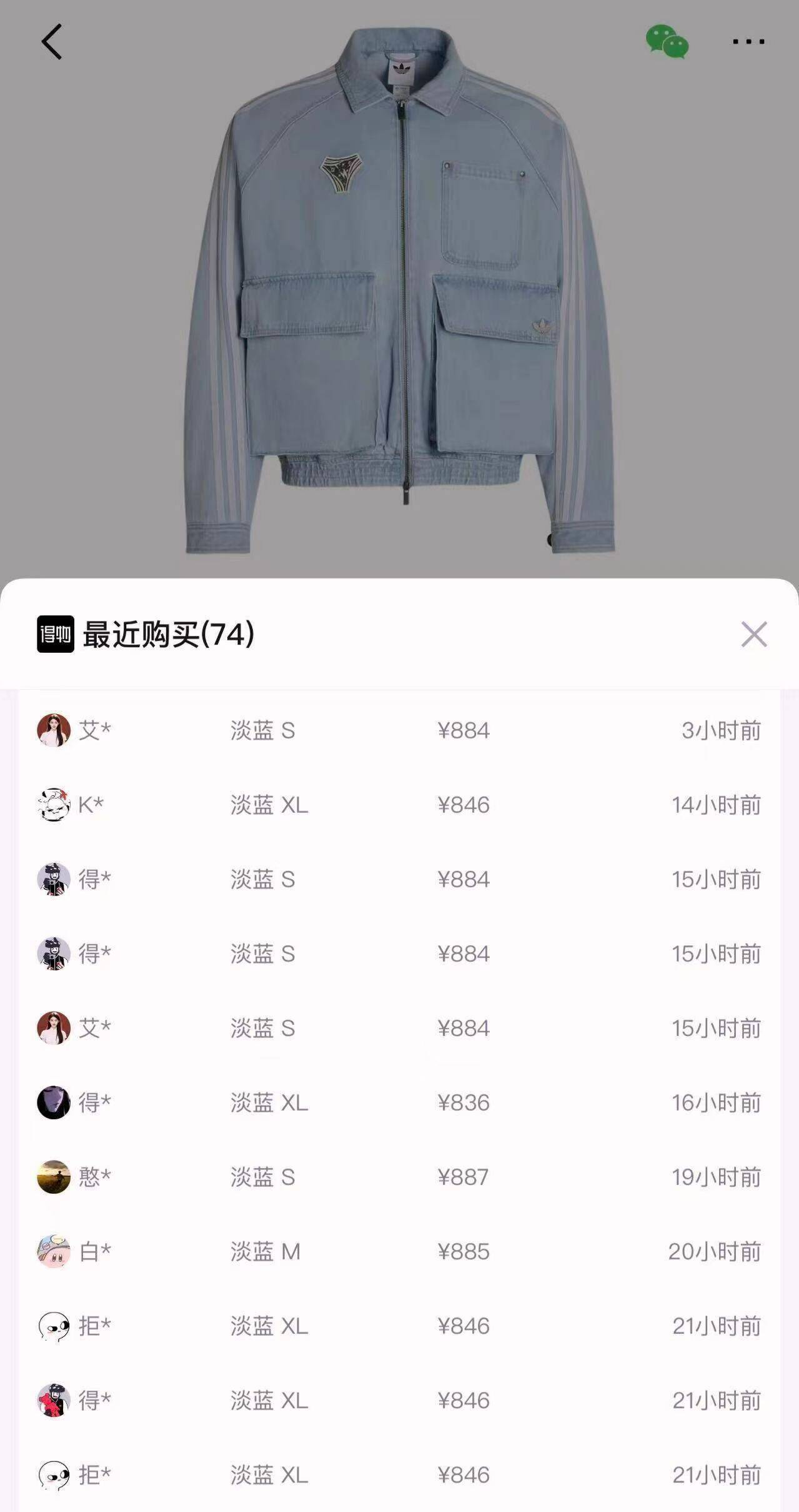 阿迪达斯蓝色牛仔外套,到手价仅需699元