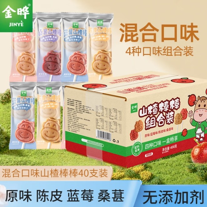 12.9元包邮!金晔 原味陈皮蓝莓桑葚味小牛山楂棒 408g*1