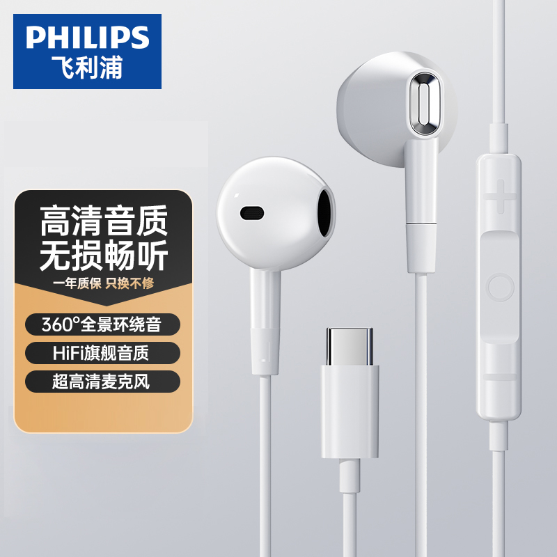¥9.9 【飞利浦】入耳式有线耳机线控耳机耳麦 39.9