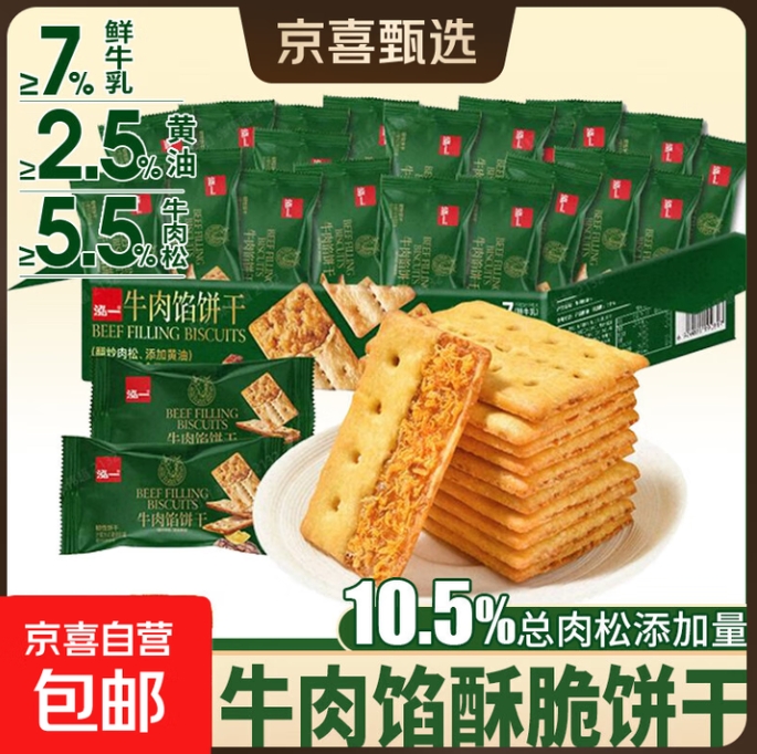 9.9元包邮!泓一牛肉馅饼干20包