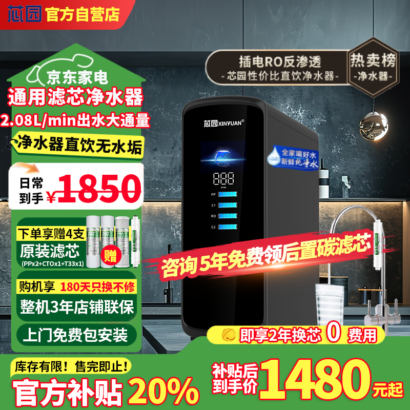 ¥1820 芯园净水器家用厨下RO反渗透直饮一体加热壁挂管线机厨房除水垢母婴净饮水机自来水通用全屋前置过滤器 800G【通用滤芯-双出水】1件 1850