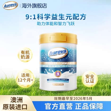 87.4元包邮!Aur有机奶粉1~3段400g*3罐