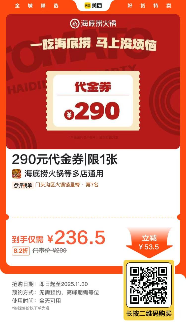 上一篇: 【美团到店】86.6元!海底捞火锅|100元代金券