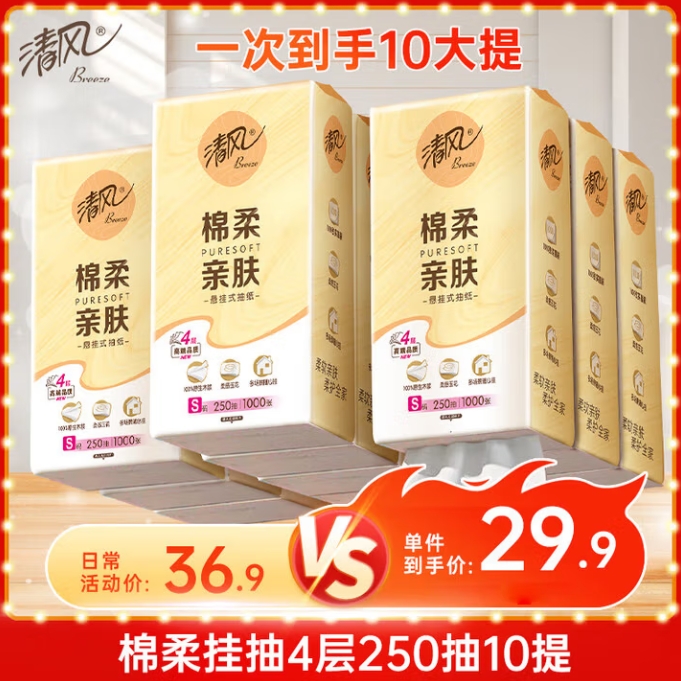 极木风绵柔巾洗脸巾3包(20*15cm)