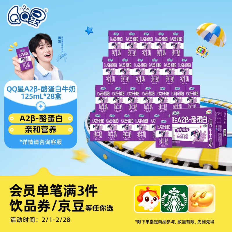 周深同款QQ星儿童牛奶年货礼盒 16元抢购!125ml*28盒装