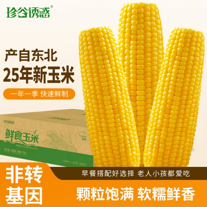 17.9元包邮!珍谷诱惑 东北糯玉米棒2.4kg/12支
