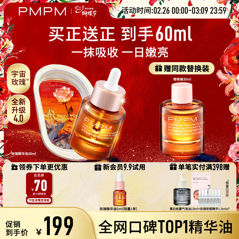 自营 PMPM 玫瑰精华油 60ml 叠首购仅 139 元