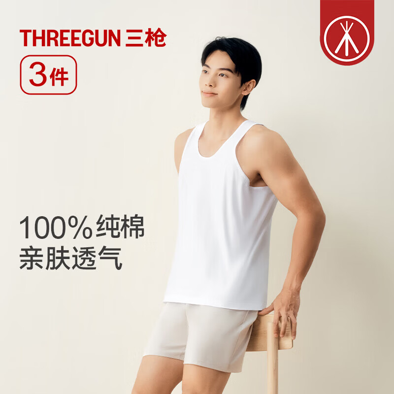 三枪纯棉新疆棉男背心3件装 仅需54.9元
