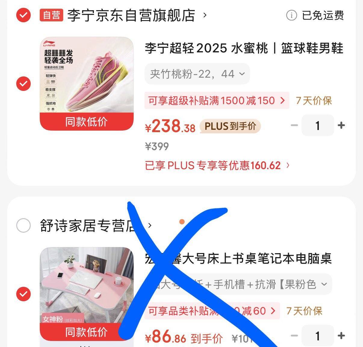 李宁超轻2025水蜜桃配色:Plus会员到手仅238元,比得物省111元