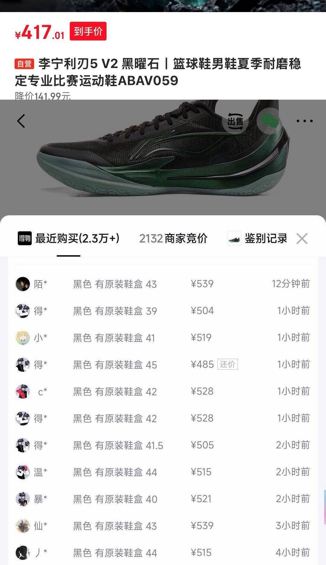 李宁利刃5V2 黑曜石,PLUS单拍到手411元