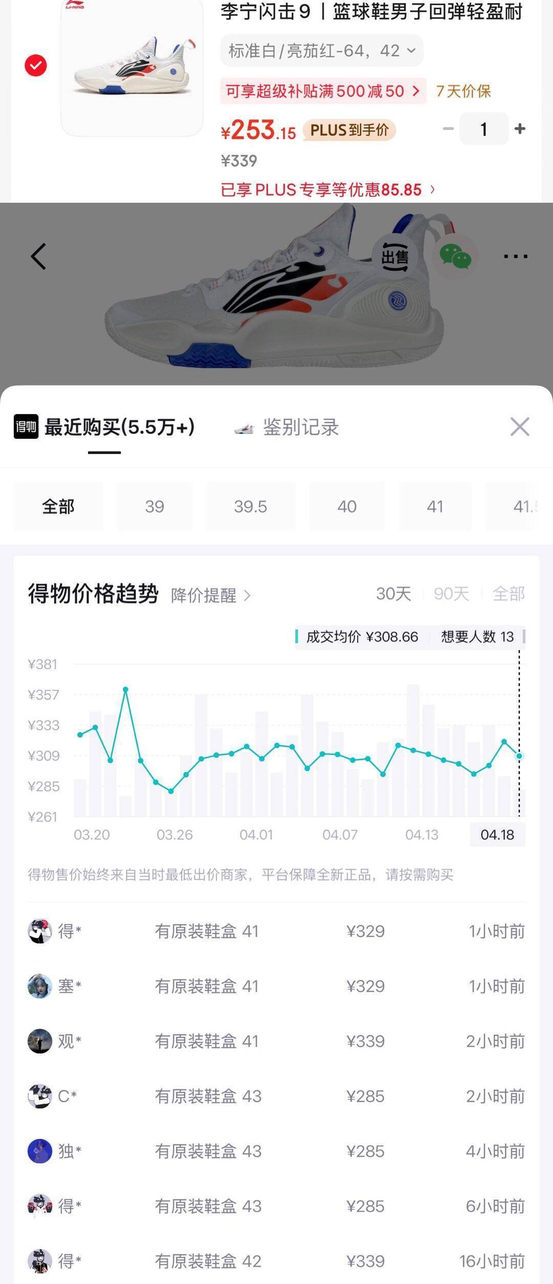 李宁闪击9篮球鞋PLUS单拍仅需244元,得物售价339元