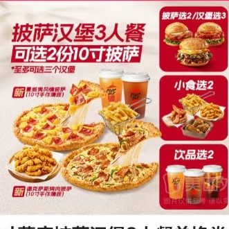 【美团外卖】69.9元!必胜客 10寸薄底披萨汉堡3人餐