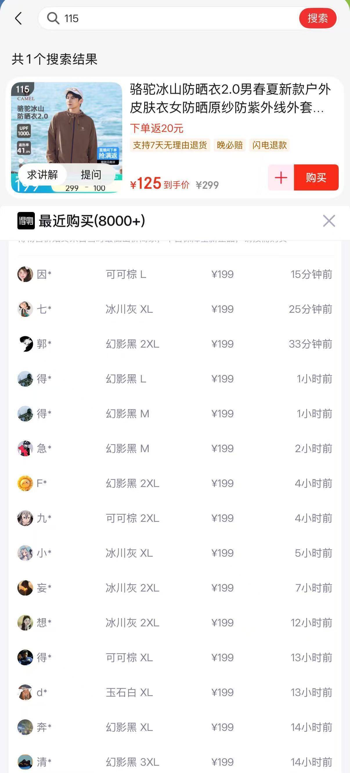 骆驼防晒衣到手99元,得物价199