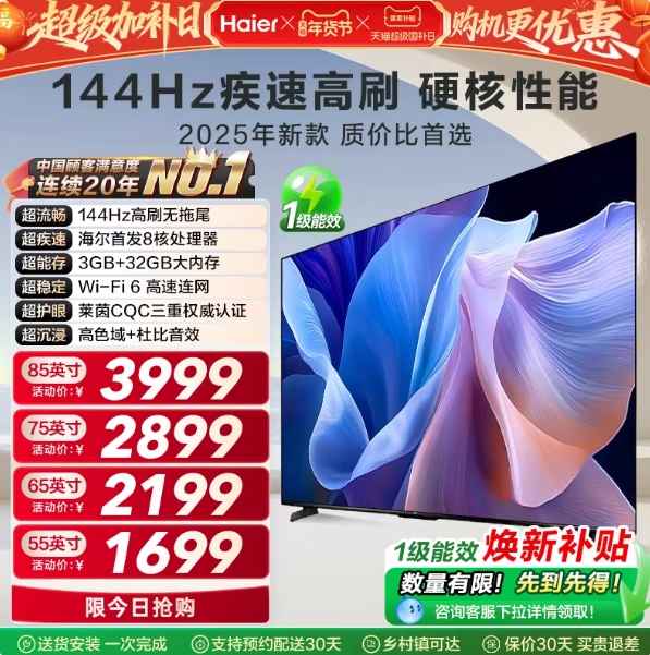 1420.89元包邮!海尔55英寸4K液晶电视