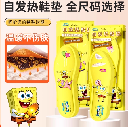 3.9元包邮!海绵宝宝发热鞋垫10片