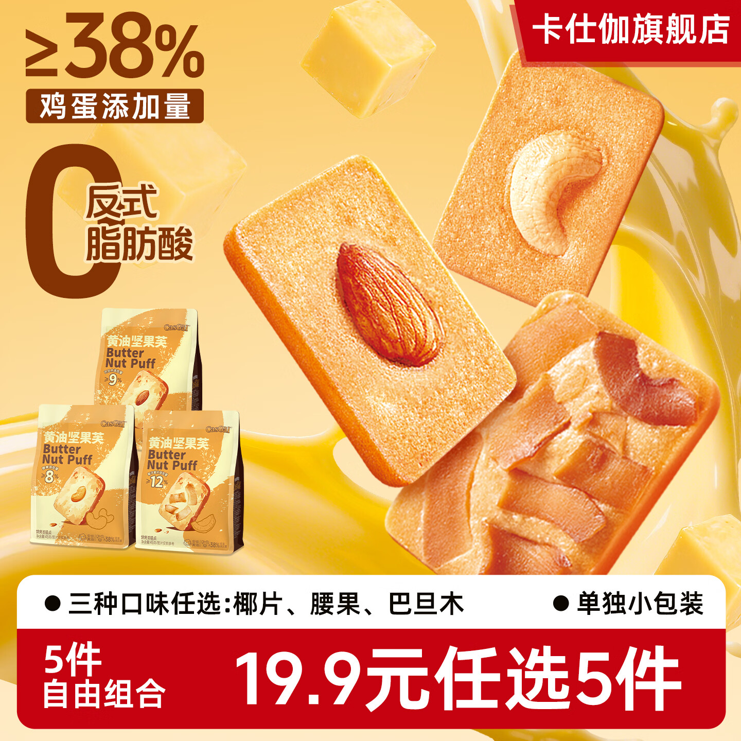 卡仕伽黄油坚果饼干:19.9元任选5件,折合3.9元/袋