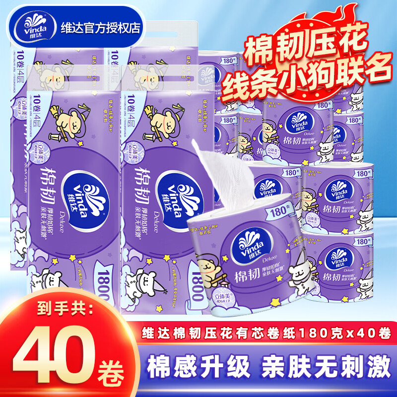 维达棉韧卷纸 4 层 180g*10 卷,领券后仅需 18.9 元!