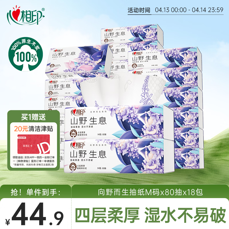 心相印抽纸向野而生4层80抽*18包M码,凑单后最终到手价低至16.97元/件