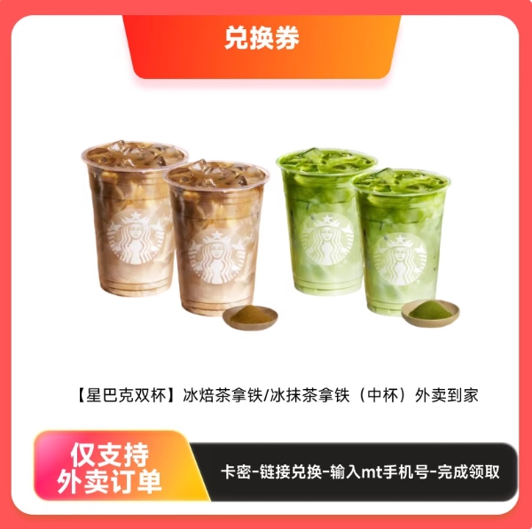 25.2元包邮,星巴克 中杯冰抹茶拿铁2杯