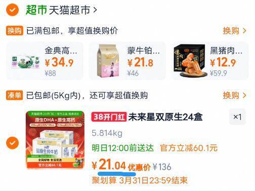 蒙牛未来星牛奶190ml*24盒,88VIP专享21元速抢!