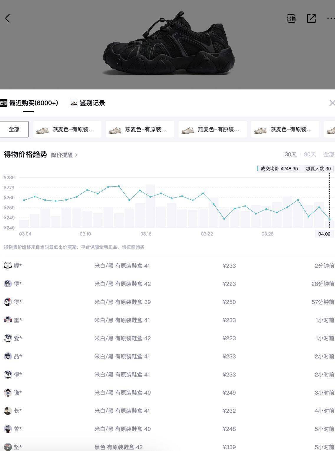 骆驼云山鞋到手149元 得物价249秒卖