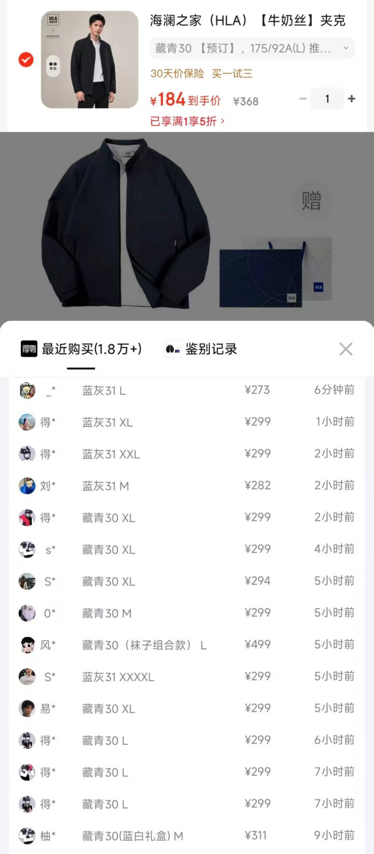 海澜之家牛奶丝轻商务外套,到手价仅需184元