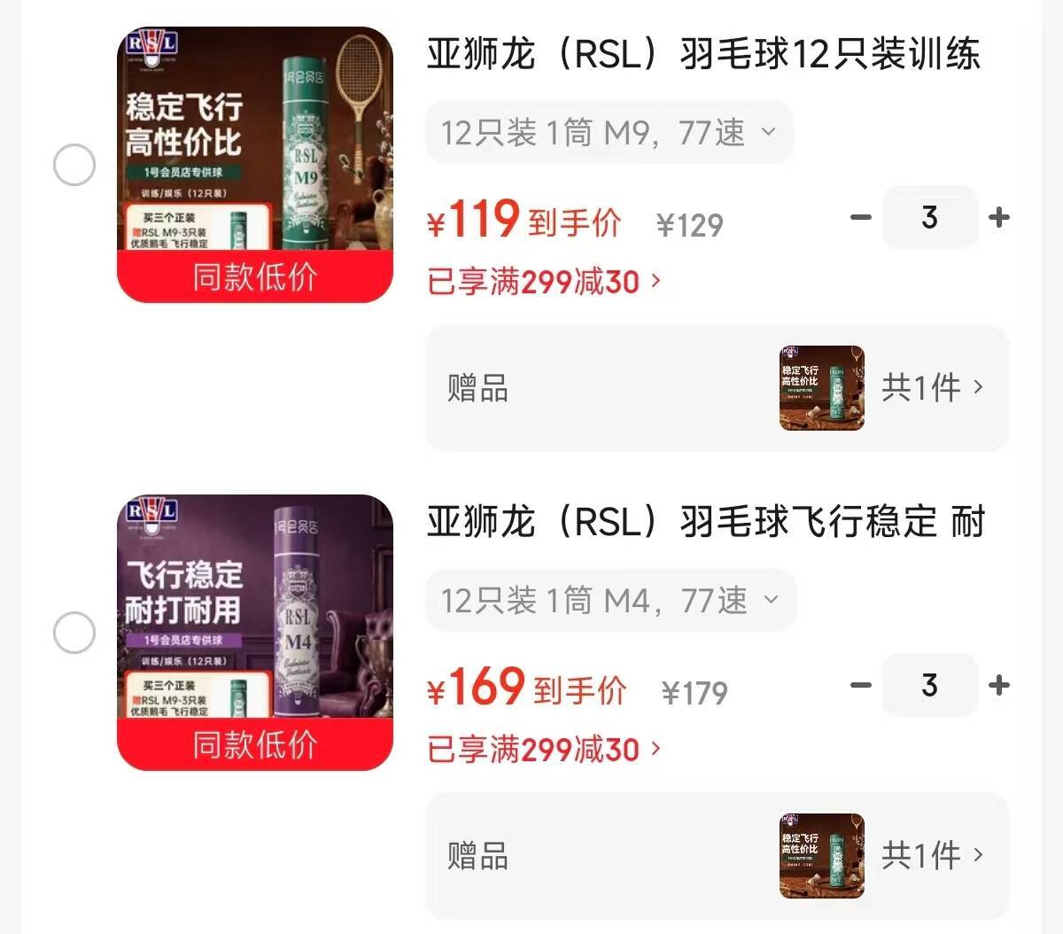 亚狮龙羽毛球M9/M4好价开抢,3筒装低至109元/筒