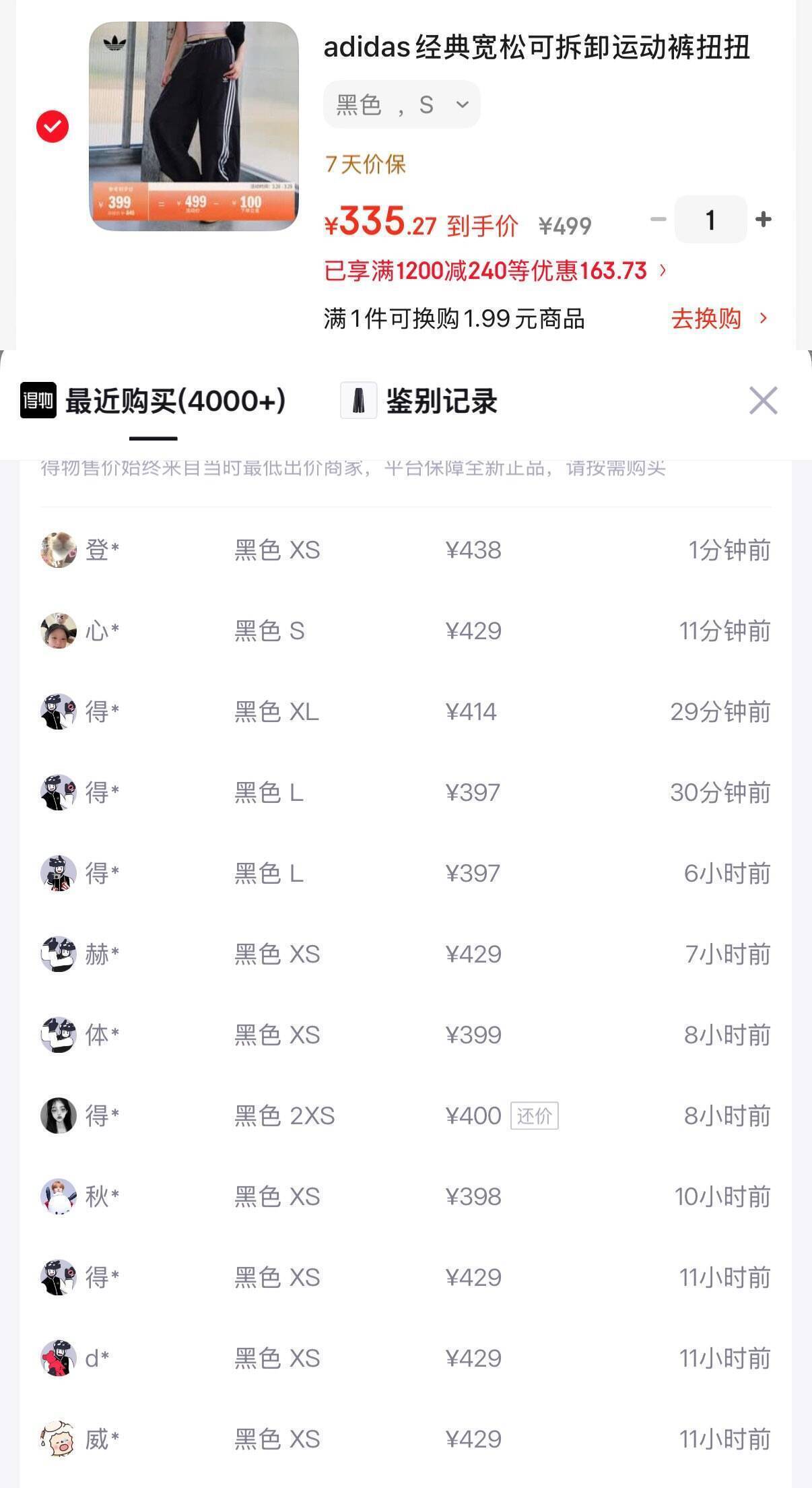 阿迪女裤拍S/XS码,购物金到手仅316元