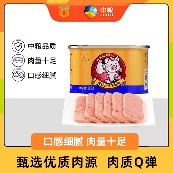 24.9元包邮!中粮梅林午餐肉罐头共198克×3罐
