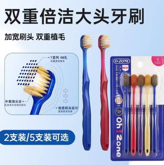 【春节特惠】欧志姆大头软毛牙刷5支装,京东Plus会员专享价仅7.5元!