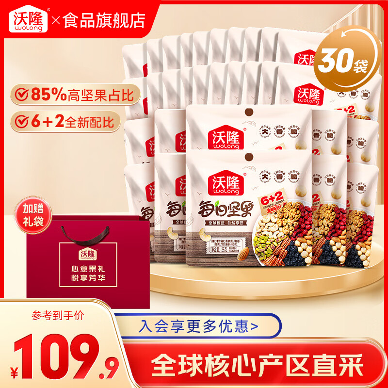 沃隆每日坚果25g*30袋到手69.9元,折合2.3/袋