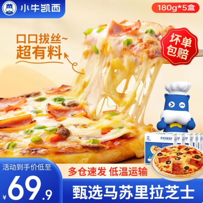 49元包邮!小牛凯西·披萨 速度拍180g*5盒