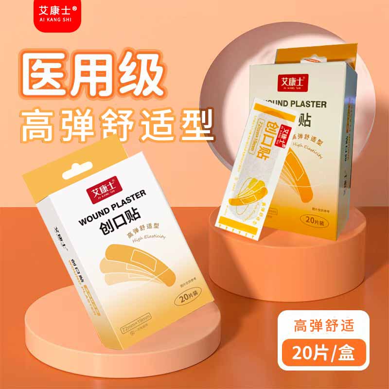 ¥2.01 艾康士创口贴高弹轻巧透气型皮外伤口护理擦伤防磨脚贴 【高弹透气型】*20片/盒 7.01