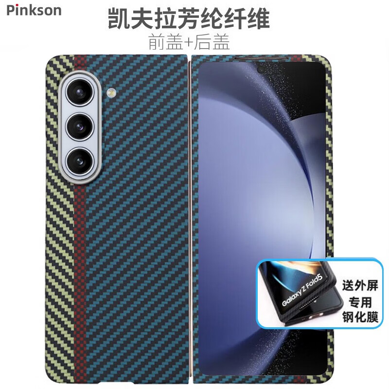 ¥182 Pinkson三星Z Fold5/6手机壳凯夫拉芳纶纤维碳纤维W24保护套超薄全包磨砂硬壳轻奢商务简约高档散热防摔 【蓝/赛道款】600D芳纶 【一套】前盖+后盖 三星W24或ZFold5 198