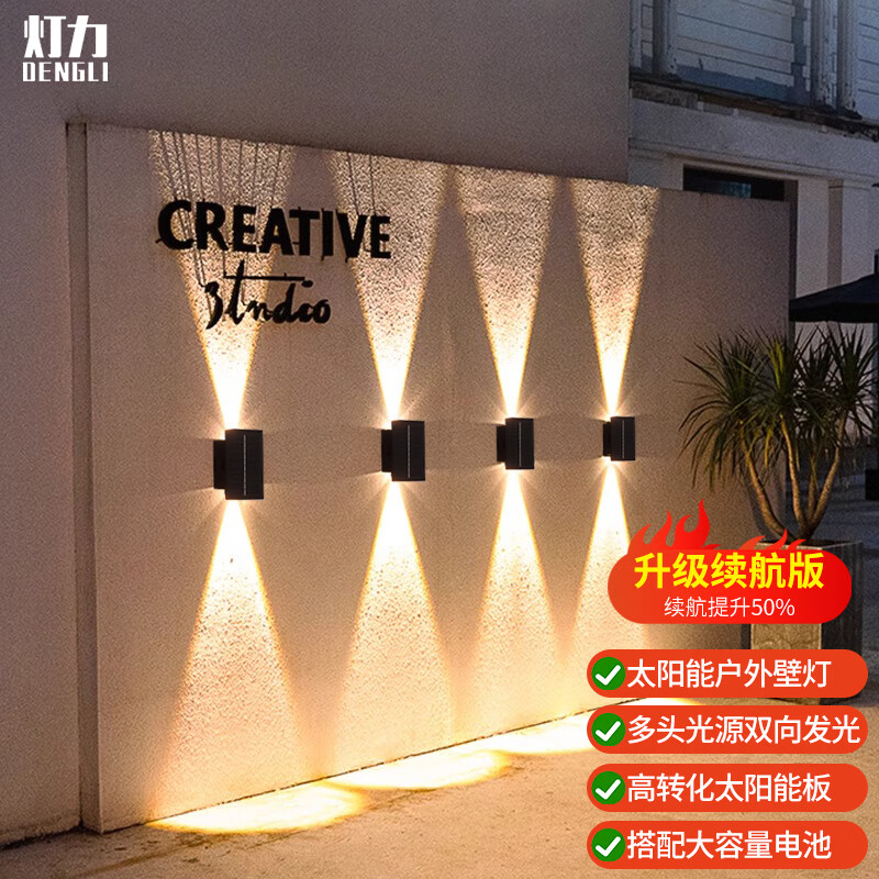 ¥56 灯力 太阳能户外壁灯室外墙壁led灯现代极简庭院照明花园灯双向发光 太阳能ABS款-双头-双向发光 79