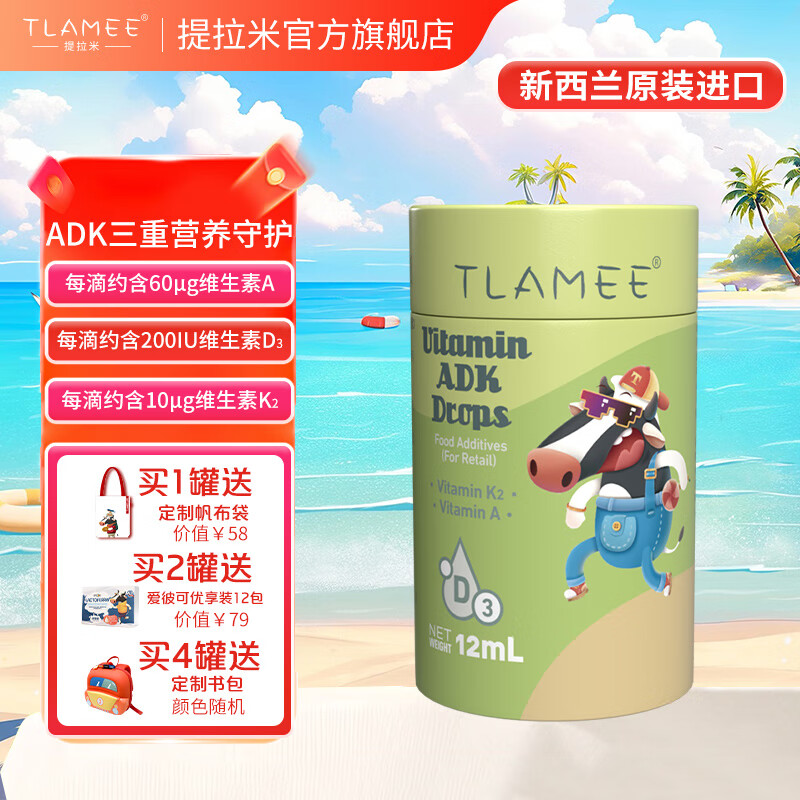 ¥248 提拉米(TLAMEE)维生素ADK滴液 升级无敏配方 三重守护 全人群适用 12ml 258