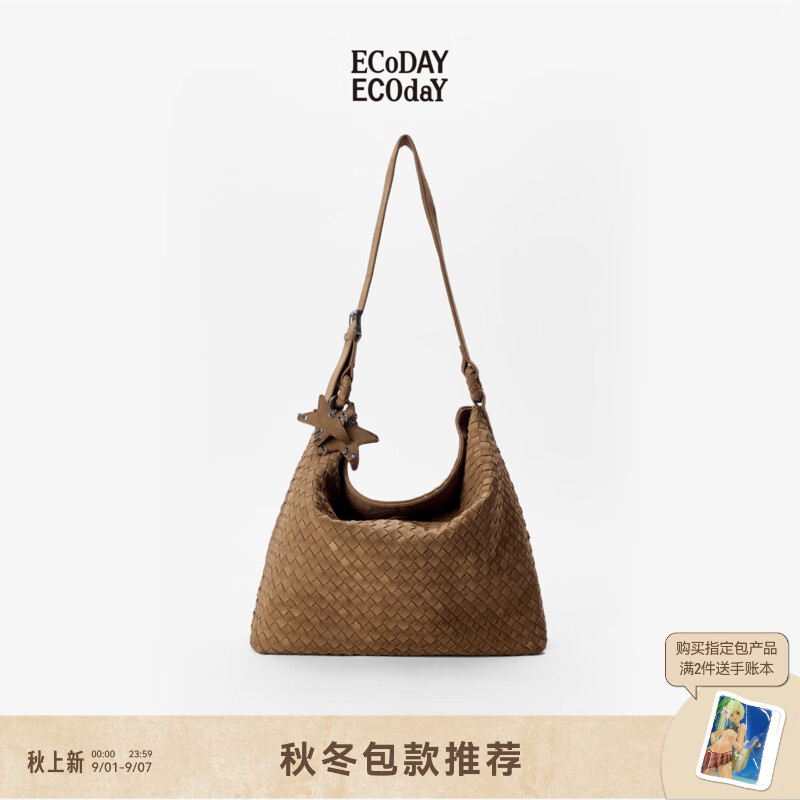 ¥403 ECODAY大号麂皮编织包托特包女单肩斜挎大容量hobo女包七夕情人节礼物 焦糖色 439