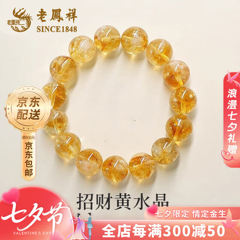 ¥748 老凤祥招财黄塔晶手链男女款转运旺事业手串七夕情人节礼物送女朋友老婆 【收藏级】黄塔晶手串【约12mm】+品牌礼盒 768