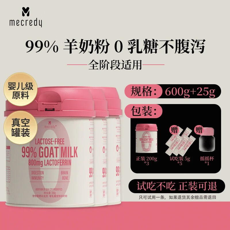 ¥391.5 MECREDY明质宠物猫咪羊奶粉狗狗 幼猫犬0乳糖添加乳铁蛋白猫咪 羊奶粉【200g*3】送试吃 同规格赠品不叠加 399