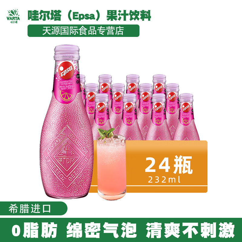 ¥157 哇尔塔(Epsa)希腊进口可乐柠檬血橙汁味碳酸汽水饮料果味气泡水232ml玻璃瓶装 【复合汽水】高颜值232ml*24瓶 228
