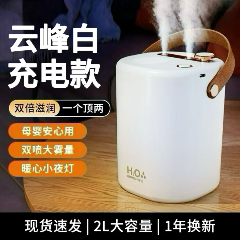 ¥128 usb加湿器卧室家用静音孕妇婴儿卧室净化空气小型大雾量恒湿香薰 云峰白[温馨夜灯+银离子抑菌] 插电款[静音+滋润补水]2L大容量 129