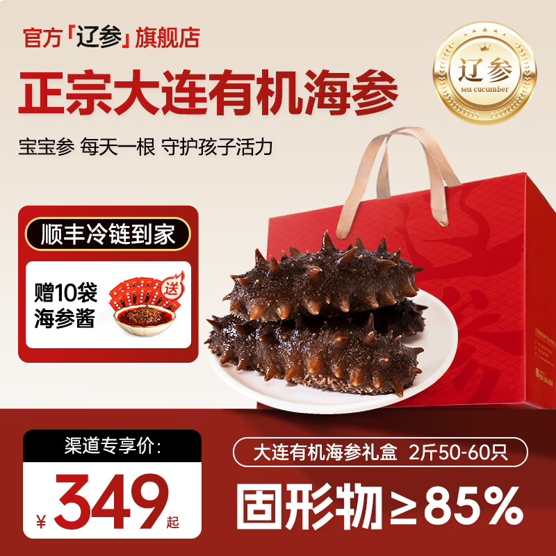 ¥1149 辽参有机海参礼盒大连海参底播刺参免泡发海鲜水产非即食生鲜独立包装 2斤 50-60头礼盒(宝宝参每天一根守护孩子活力) 1299