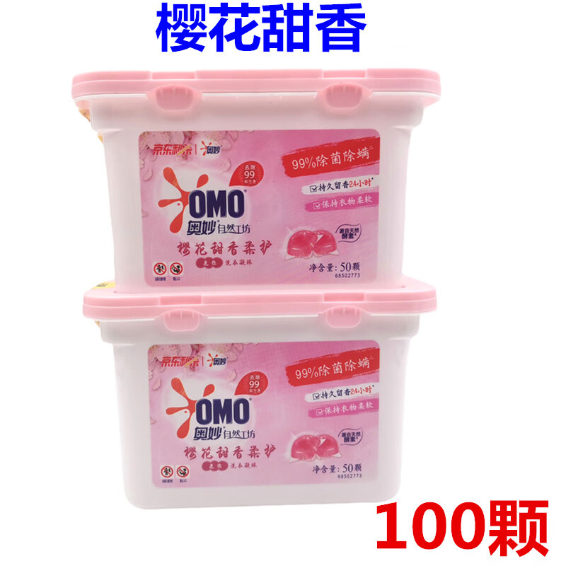 ¥21.54 奥妙洗衣凝珠持久留香柔顺护衣护色樱花甜香除菌除螨浓缩洗衣夜粉球盒 (2盒100粒)樱花香 22.54