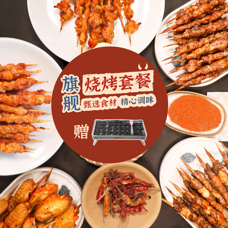 ¥198 丝旅盛宴【赠烧烤炉】羔羊肉串牛肉串烤串烧烤露营BBQ食材烧烤套装3-5人份 298