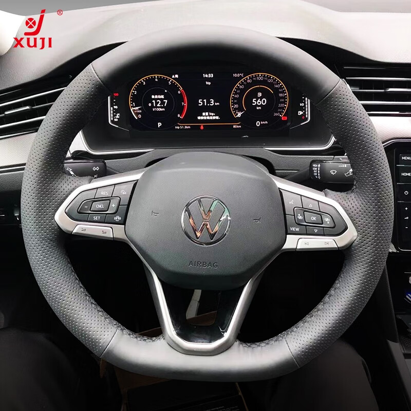 ¥238 徐记 真皮手缝方向盘套适用大众迈腾ID.4X途观L朗逸id3速腾帕萨特探岳 黑皮侧孔-黑线 所有车型可定制 258